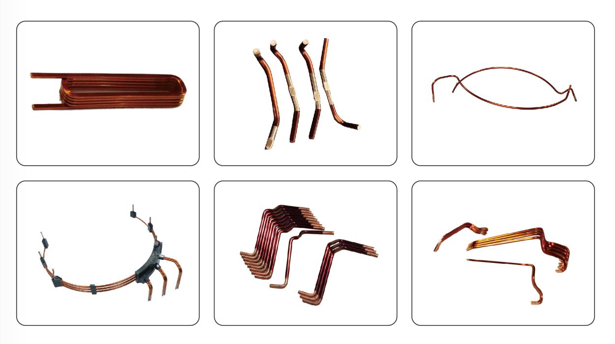 第二招:【專用工裝+精準(zhǔn)剝漆,破解精度難題】 針對(duì)漆包線特性設(shè)計(jì)的專用成型卷曲工裝,輕柔呵護(hù)線材表面,最大限度減少對(duì)漆包線絕緣表面的壓傷、刮傷,確保線圈絕緣性能完好無損。獨(dú)立控制的剝漆系統(tǒng),深度長(zhǎng)度精準(zhǔn)可調(diào),確保每一次折彎和剝漆都分毫不差;